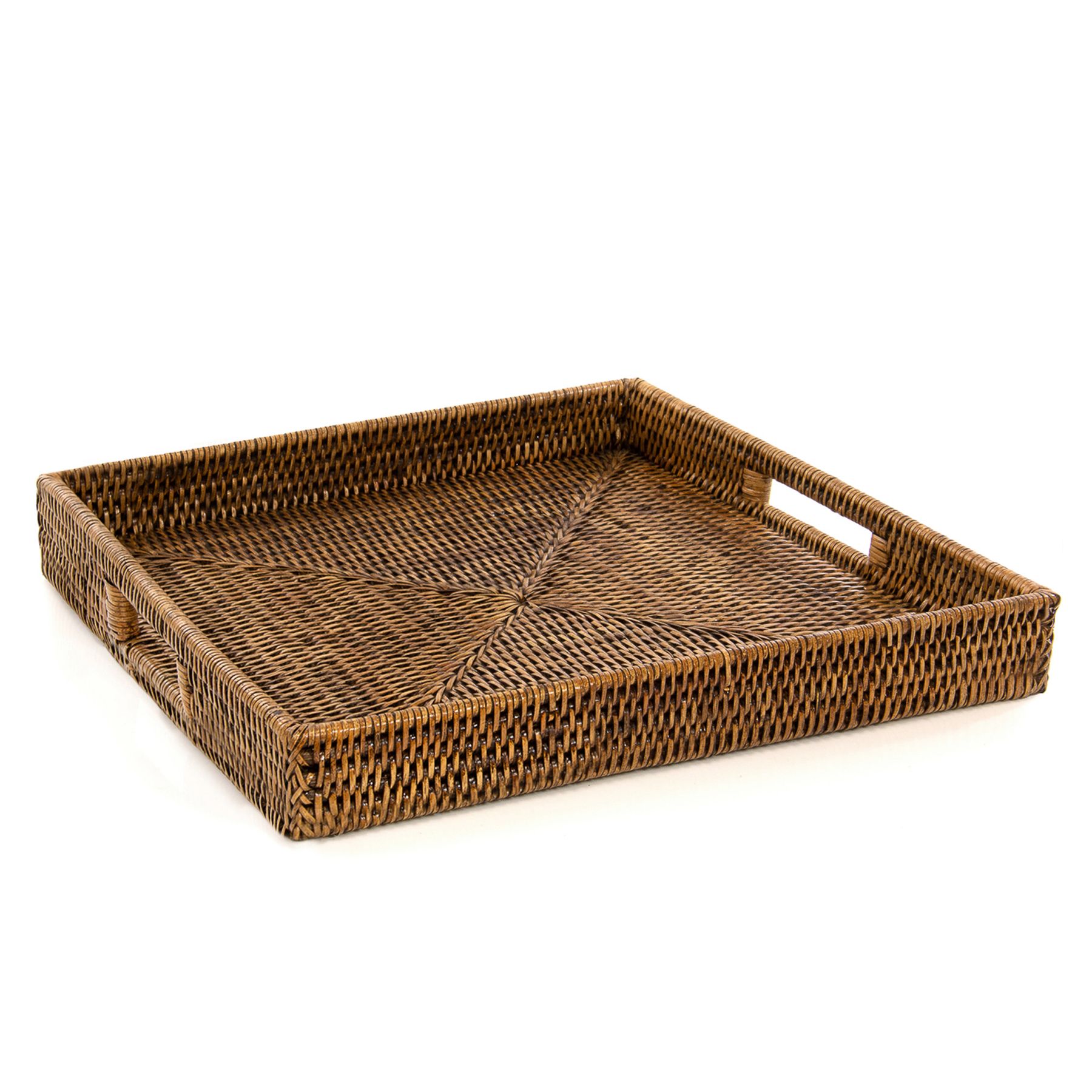 Bandeja Quadrada Com Alça De 50x50x8cm Em Rattan Tailândia - La Ville Collection
