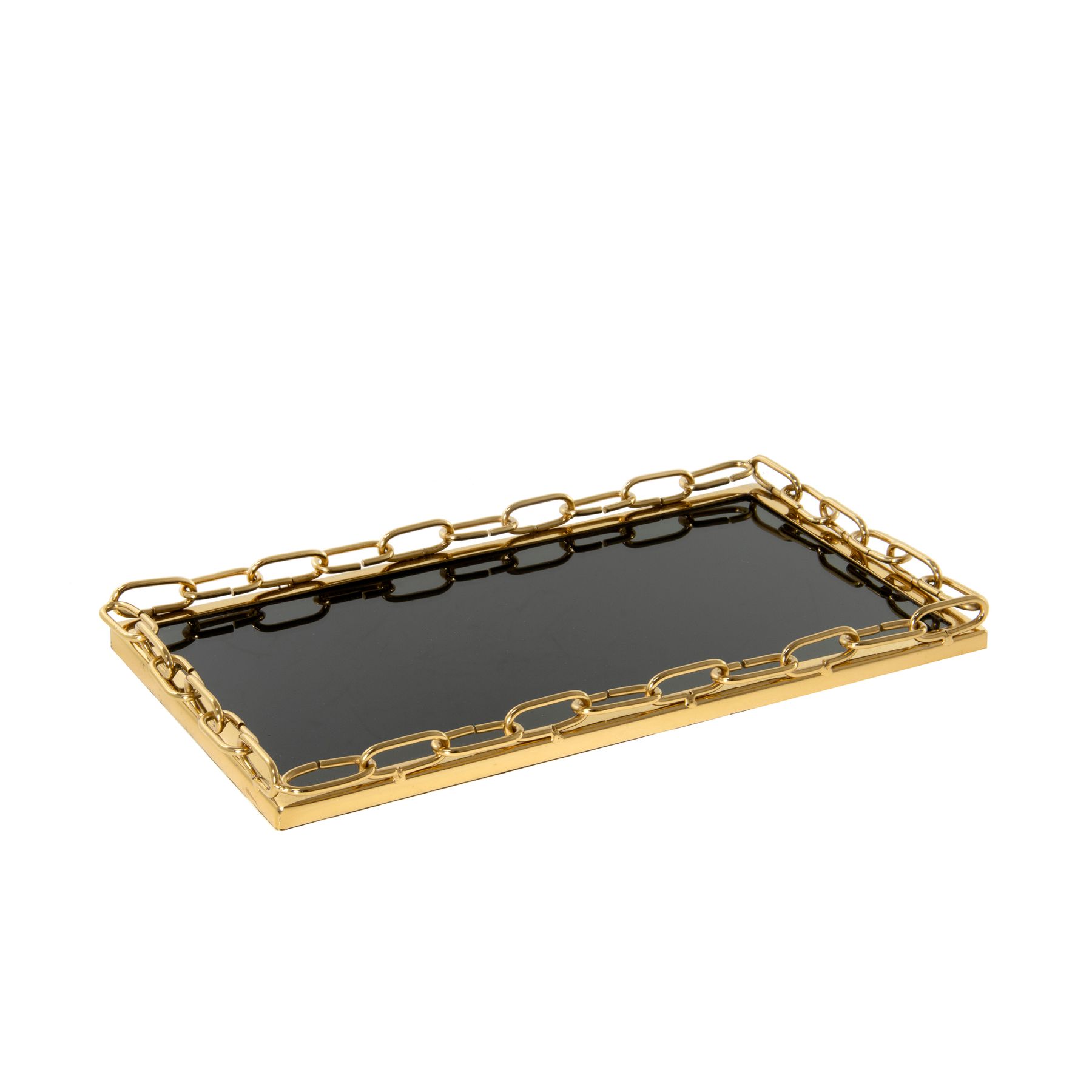 Bandeja De 30x17x2,5cm Gold Em Metal - Chain Noir Mirror La Ville Collection