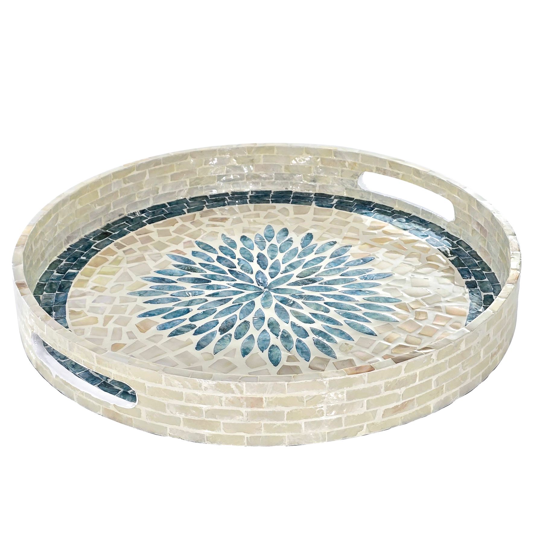 • 72889 Bandeja Redonda De 40cm Em Madrepérola - Santorini La Ville Collection