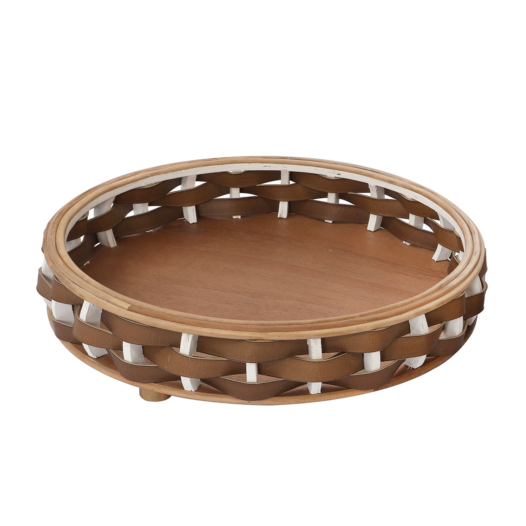 Centro de Mesa Redondo De 35,5X9,5cm Caramel Em Fibra E Madeira