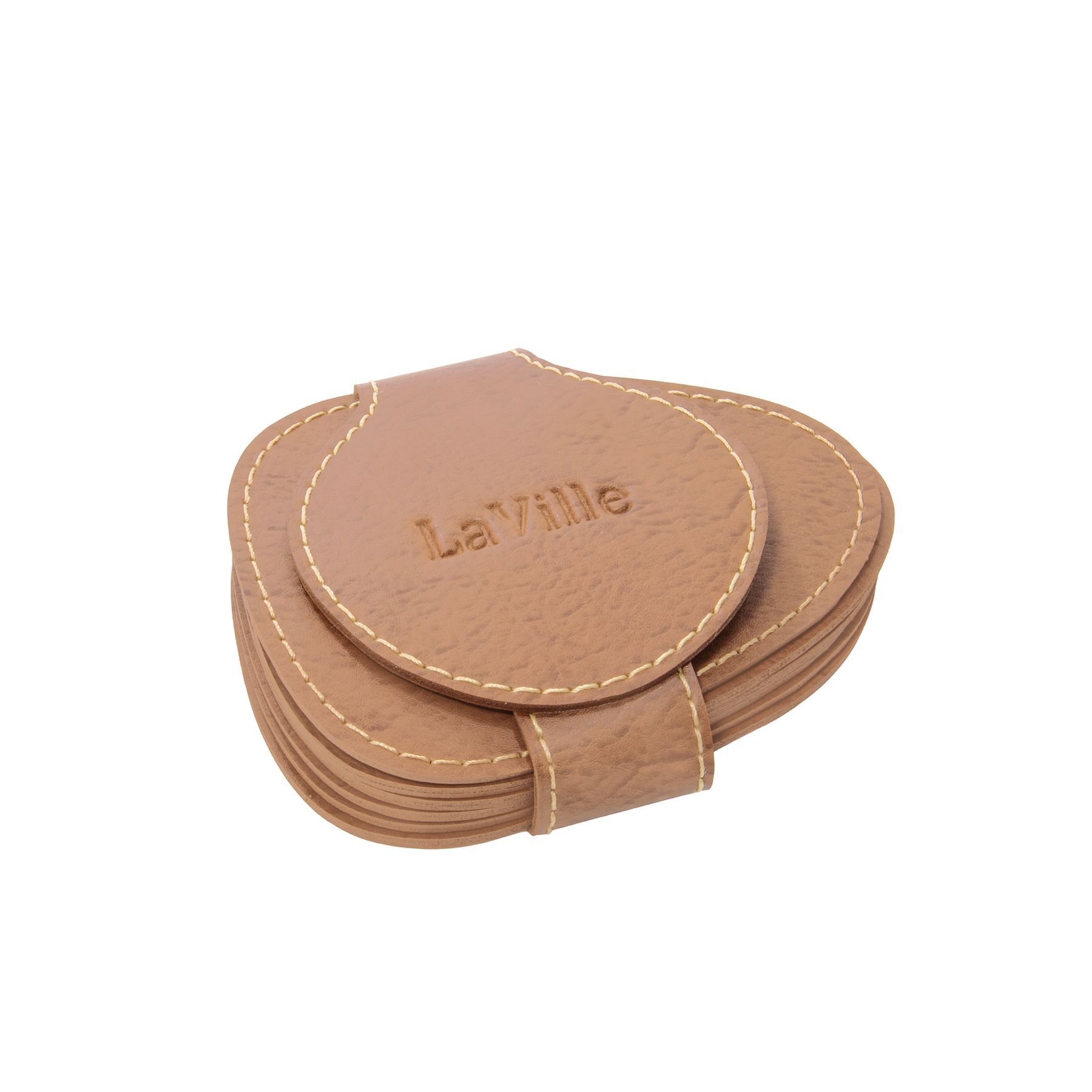 • 76996 Conjunto de Porta Copos Com 6 Unidades De 13x9,5cm Bege Em Eco Couro - Boda Italiana Canyon La Ville Collection
