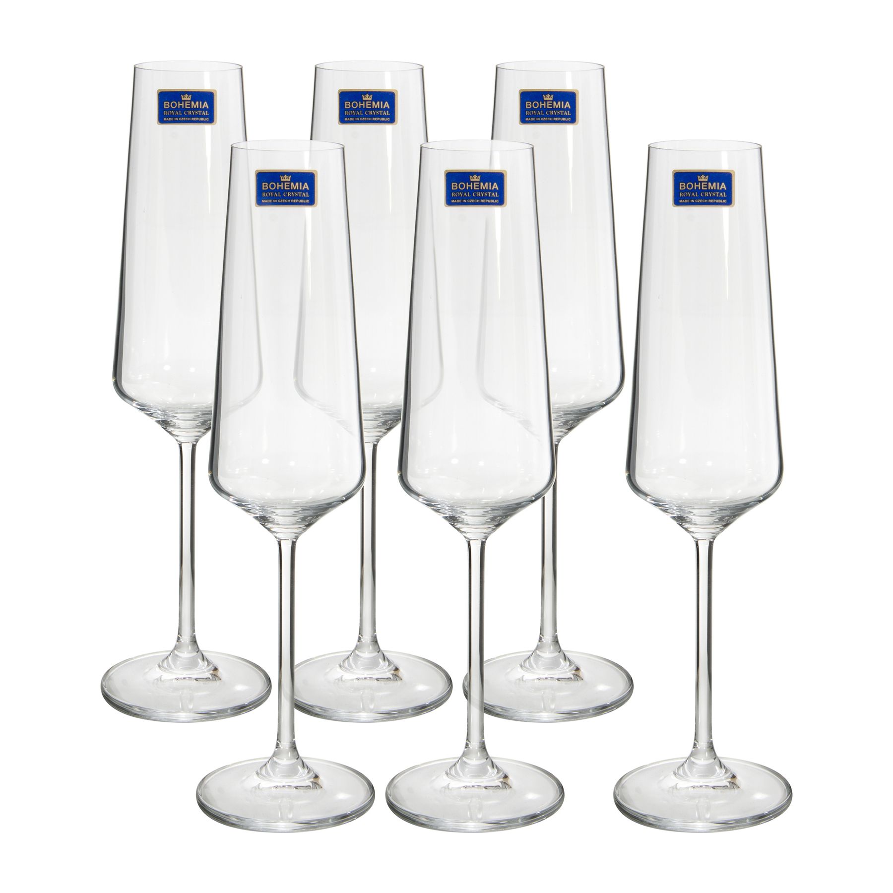 Conjunto de Taças para Espumante - Sora Bohemia É composto por: 06 peças Tamanho: 24x4cm Capacidade:190ml Material: Cristal de Titânio Origem: República Tcheca