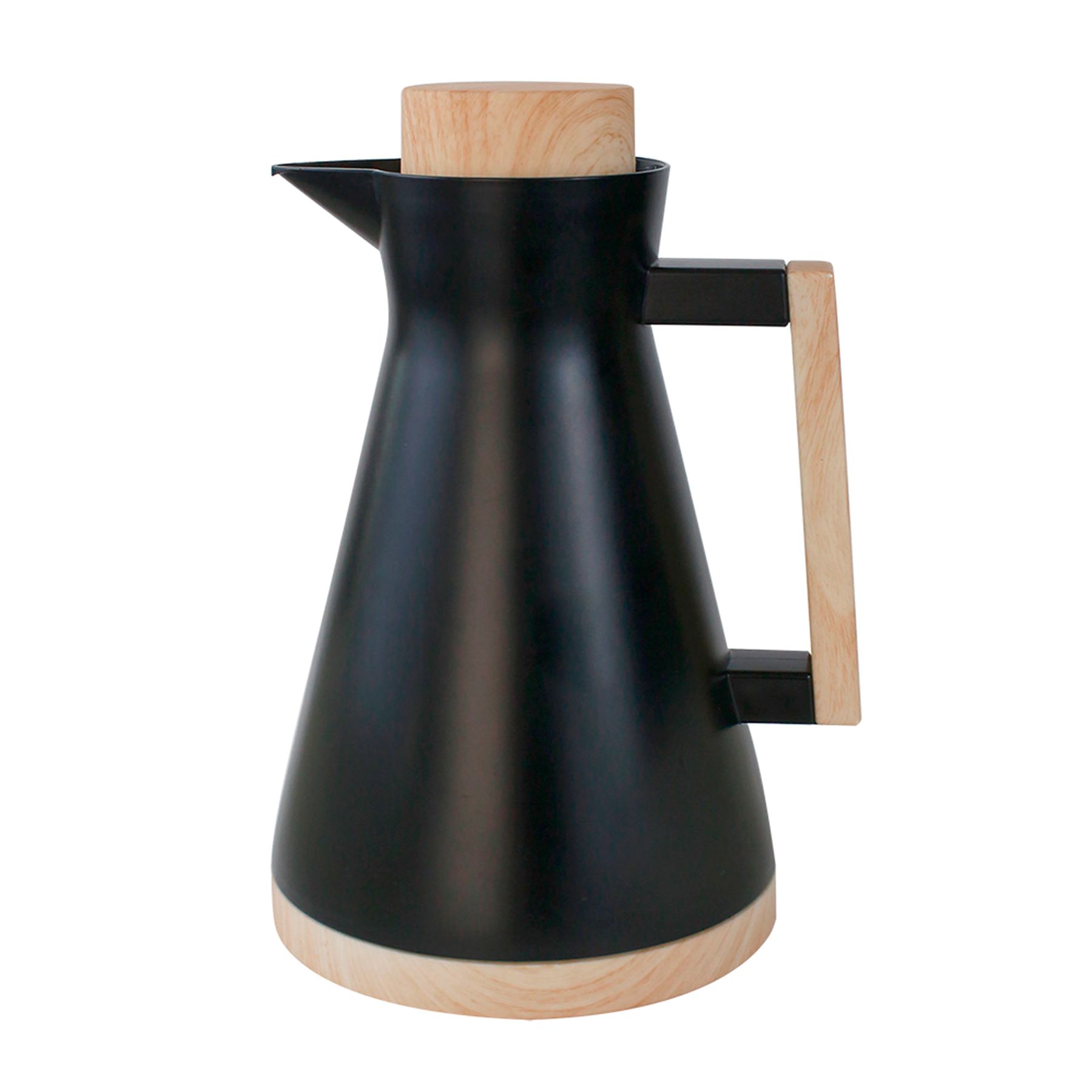 • 71480 Garrafa Térmica 01l Preta Em Polipropileno E EM Madeira