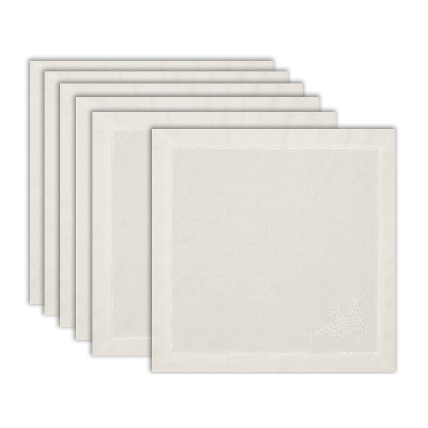 • 500051 Guardanapo 06 pecas 100% linho off white bordado