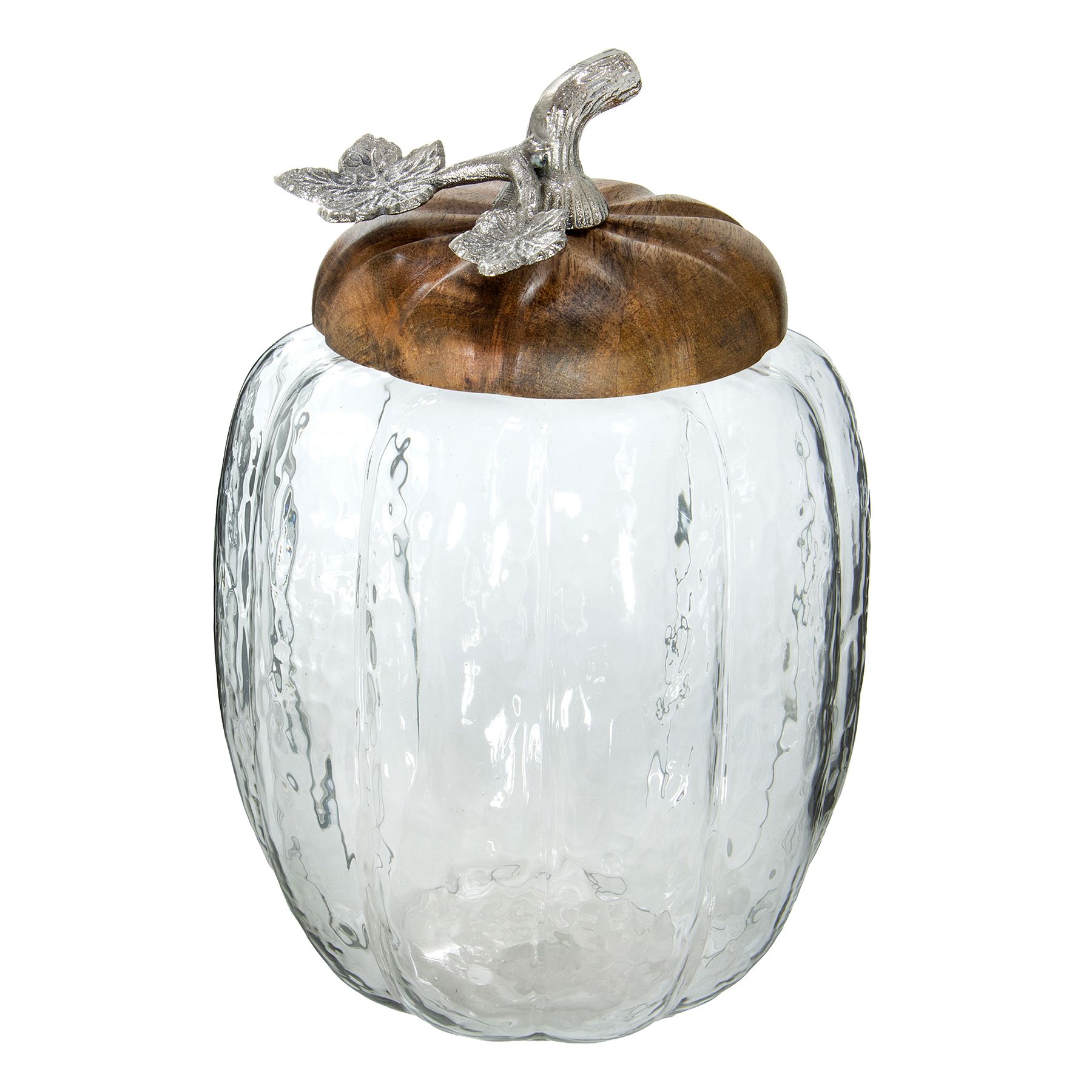 Pote De 30,5x19cm Em Vidro Canelado E Com Tampa Em Wood E Níquel - Pumpkin La Ville Collection - Pote De 30,5x19cm Em Vidro E Com Tampa Em Wood E Níquel - Pumpkin La Ville Collection