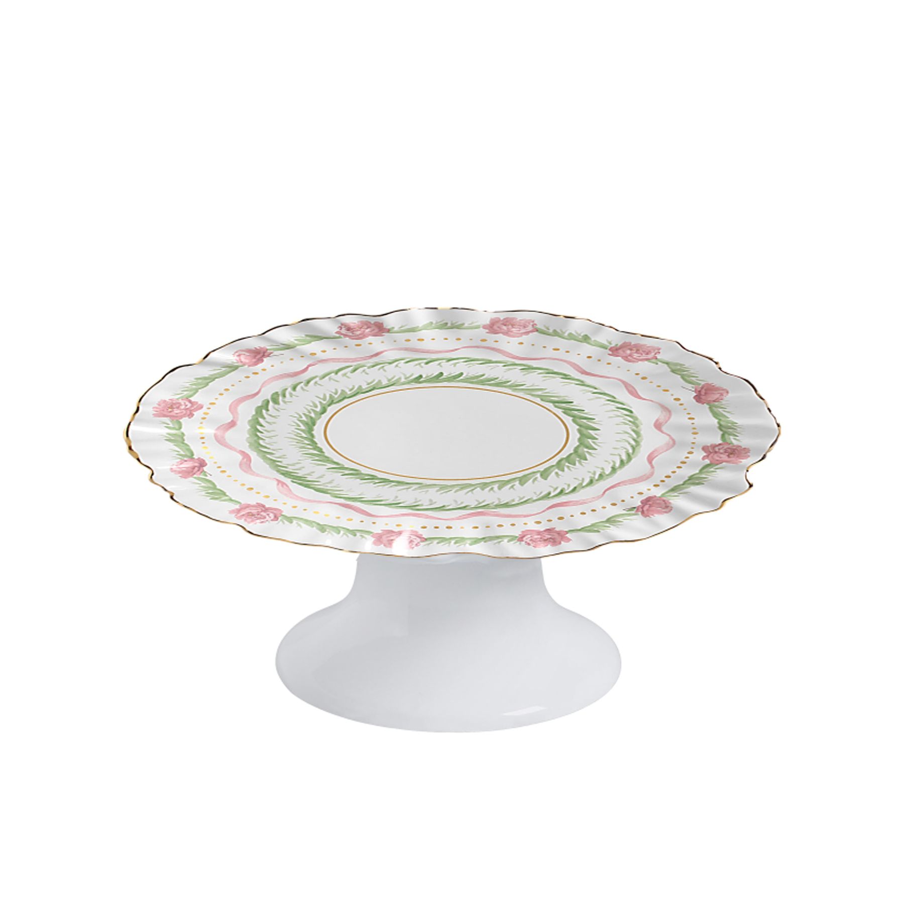 Prato para Bolo Com Pé De 27,5x11cm Com Filet Gold Em Cerâmica - Fleur De Rose